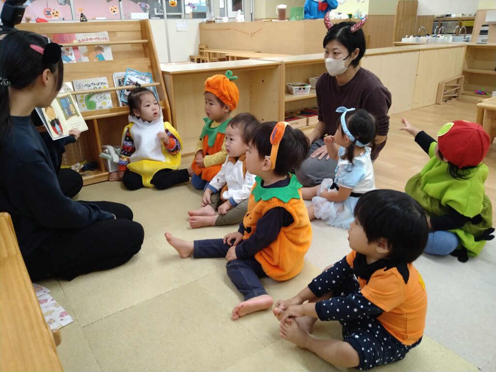 ハロウィンの日、それぞれのクラスでハロウィンにちなんだ絵本を読んだり、魔女からハロウィンのお菓子をもらったりして楽しみました。そら組は自分で作ったカードを使って、特別な遊びで盛り上がっていました。
